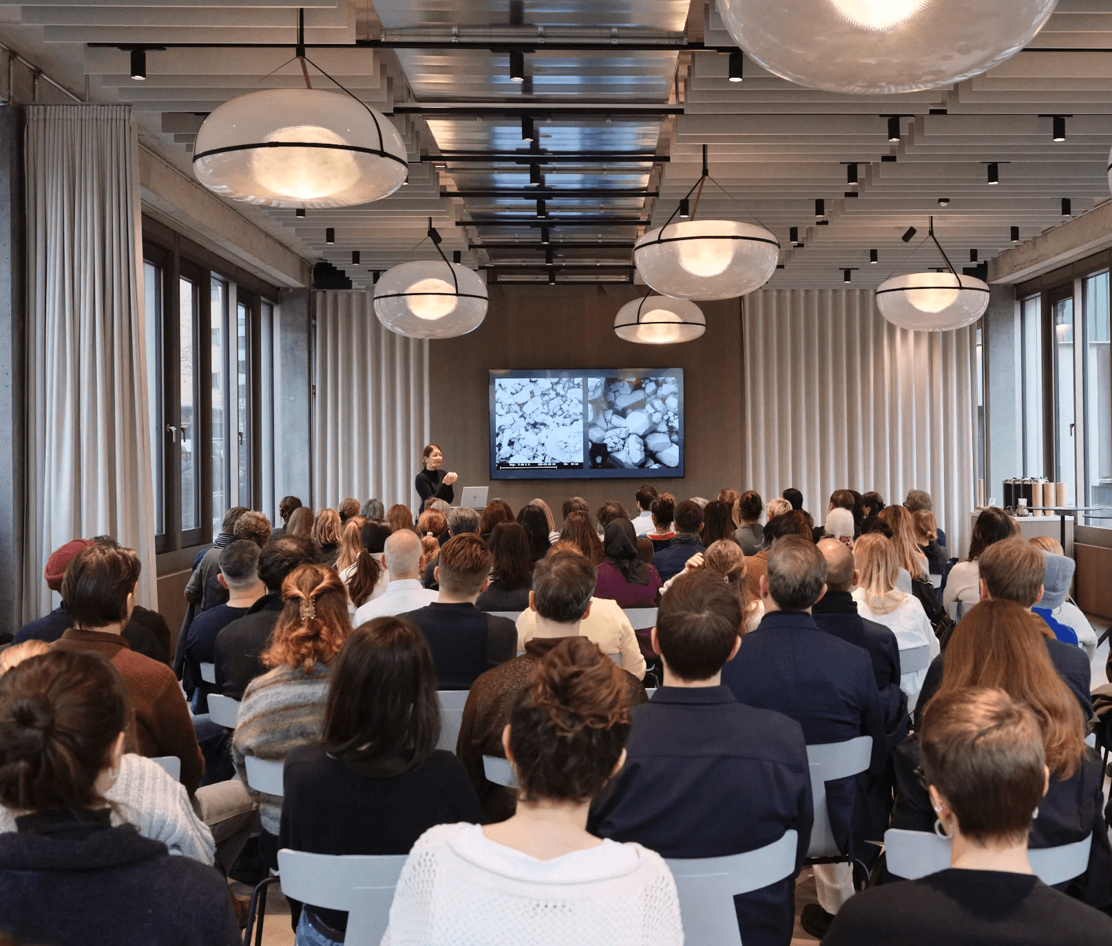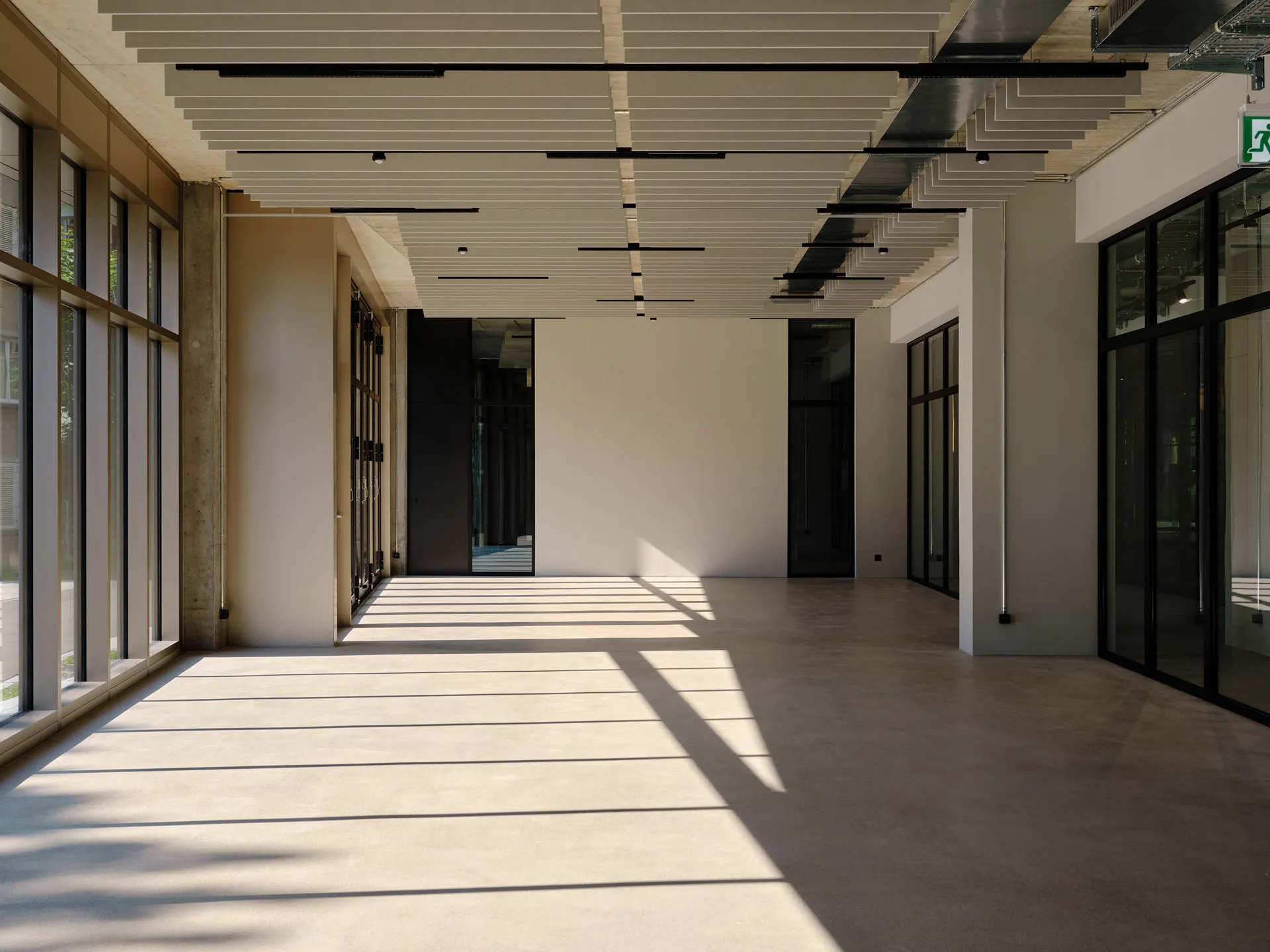 Der Eventraum eignet sich für Ausstellungen, Talks, Workshops oder Formate mit öffentlicher Ausrichtung. Umlaufende Fensterflächen schaffen eine starke Präsenz nach aussen und machen Veranstaltungen sichtbar. Flexible Möblierung, moderne Technik und textile Raumtrennung ermöglichen unterschiedliche Set-ups. Eine integrierte Küche sowie ein separater Eingang machen den Raum vielseitig und einfach nutzbar.